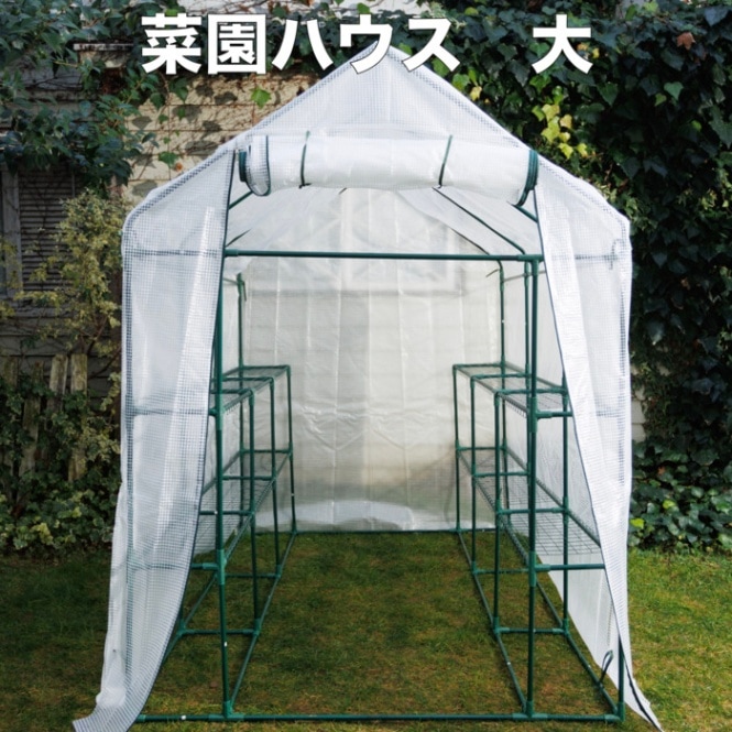 園芸用 菜園ハウス 大 ビニールハウス 小型 家庭用 約3平米 棚付き 幅143×奥行216×高さ195cm