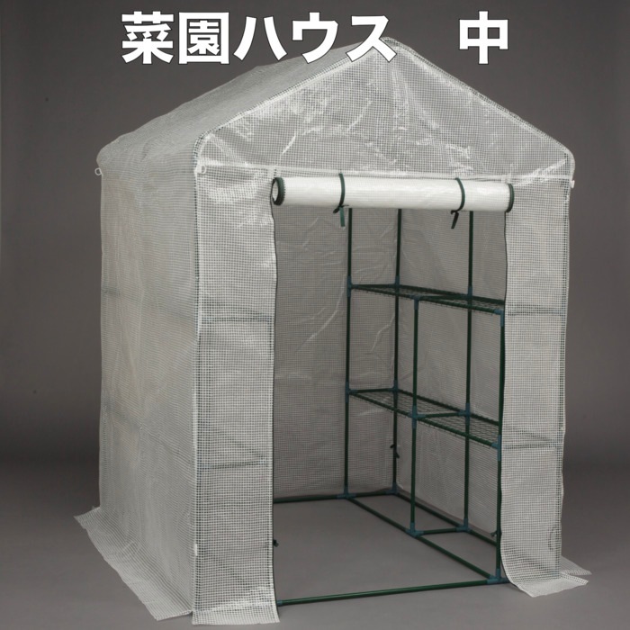 園芸用 菜園ハウス 中 ビニールハウス 小型 家庭用 約2平米 棚付き 幅143×奥行143×高さ195cm