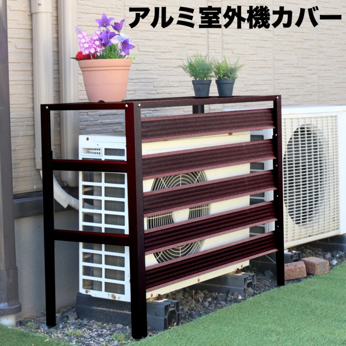エアコン室外機アルミカバー ブラウン アルミ製 おしゃれ 収納 日よけカバー 室外機ラック 大型 斜めルーバー