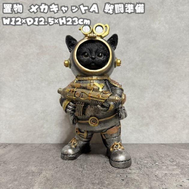 猫の置物 メカキャットA 戦闘準備 高さ23cm かわいい おもしろオブジェ 北欧 動物 野川農園 大きい おしゃれ ガーデン インテリア プレゼント 玄関 雑貨 モダン 面白い ギフト 家 リアル