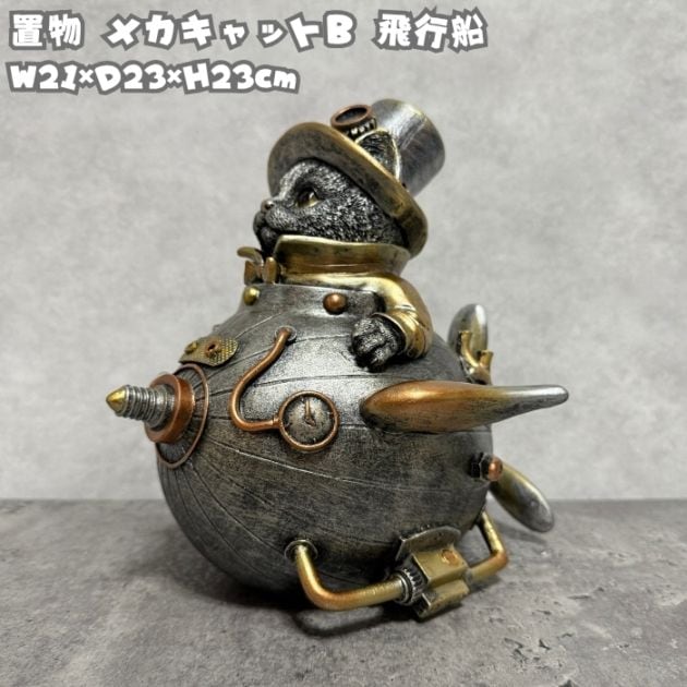 猫の置物 メカキャットB 飛行艇 高さ23cm かわいい おもしろオブジェ 北欧 動物 野川農園 大きい おしゃれ ガーデン インテリア プレゼント 玄関 雑貨 モダン 面白い ギフト 家 リアル