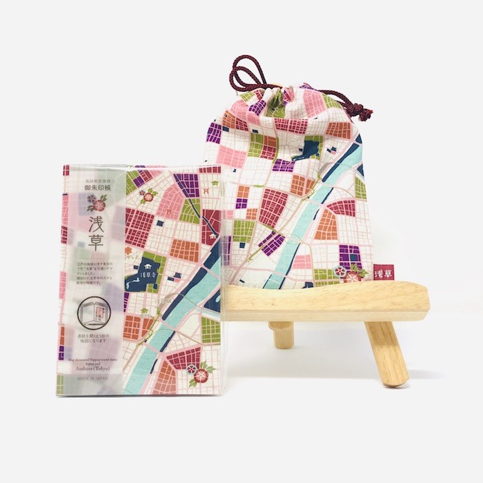 御朱印帳 地図柄 専用袋セット「東京・浅草」 かわいい おしゃれ 蛇腹折り ご縁 旅雑貨 ポーチ付き