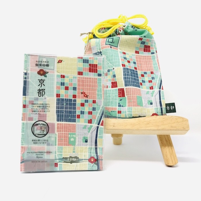 御朱印帳 地図柄 専用袋セット「京都」 かわいい おしゃれ 蛇腹折り ご縁 旅雑貨 ポーチ付き