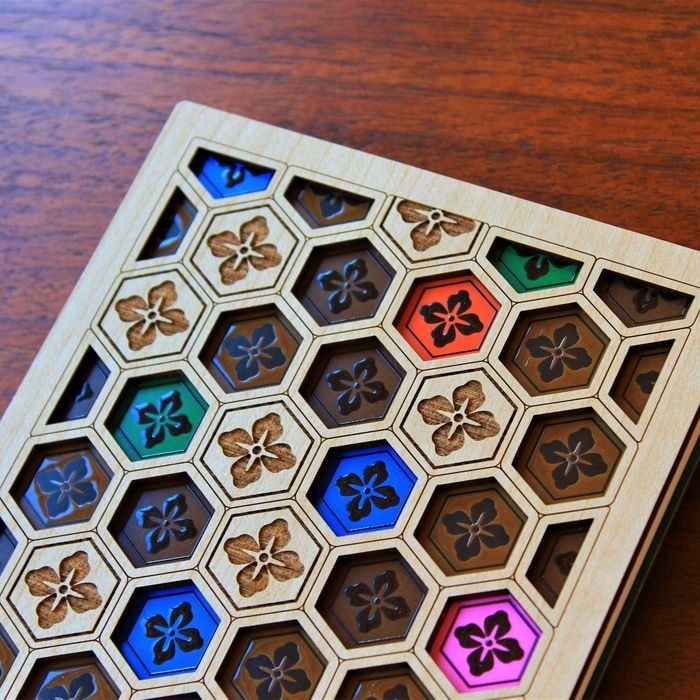 御朱印帳 和柄「花菱(はなびし)」(カラフル) かわいい おしゃれ 木製素材のカバー表紙 高級御朱印帳 蛇腹折り ご縁