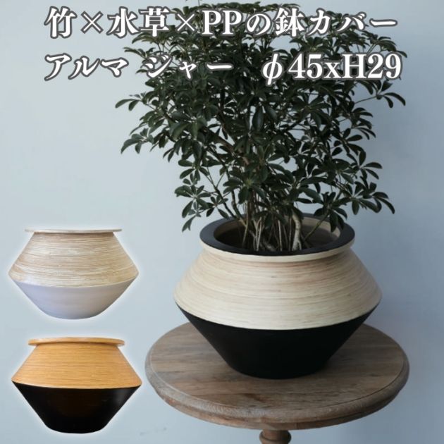 鉢カバー おしゃれ 大型 14号 11号 アルマ ユー 竹製 木製 屋内向け 北欧 室内 観葉植物用 サボテン 特大 ガーデニング 玄関 インテリア プランター KONTON