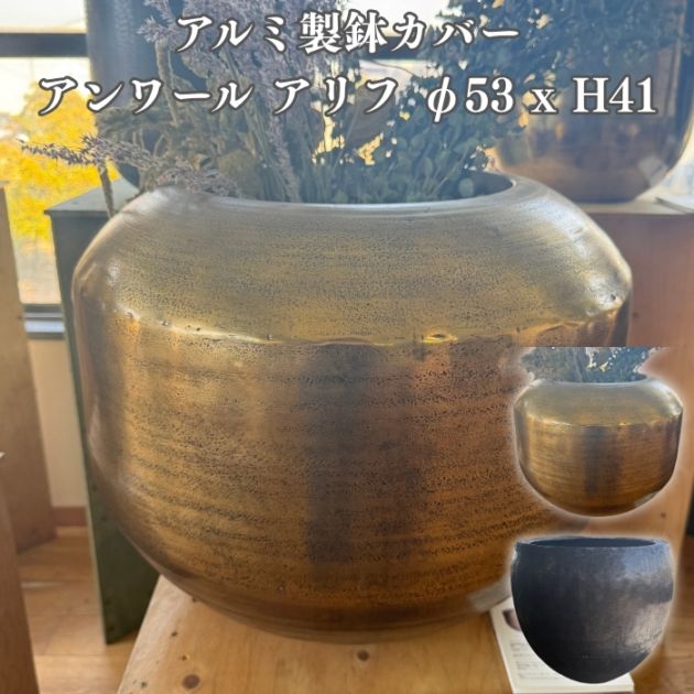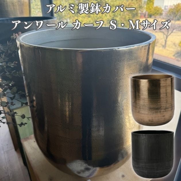 鉢カバー おしゃれ 大型 13号 11号 鉢カバー アンワール カーフ アルミニウム製 室内専用 高級 丸型 ゴールド ブラック 北欧 観葉植物用 サボテン 特大 インテリア プランター 深型