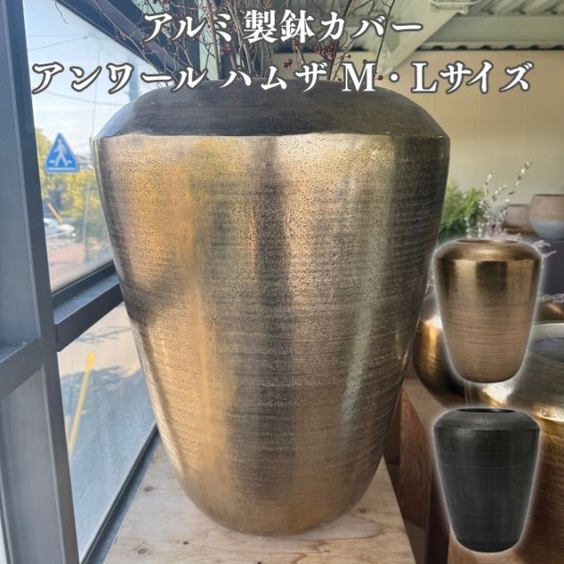 鉢カバー おしゃれ 大型 22号 16号 アンワール ハムザ アルミニウム製 室内専用 高級 丸型 ゴールド ブラック 北欧 観葉植物用 サボテン 特大 インテリア プランター 深型