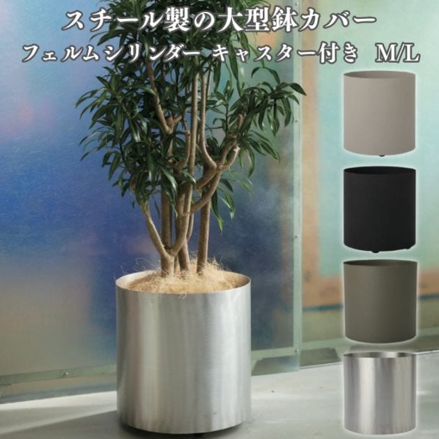 鉢カバー おしゃれ 大型 13号 10号 フェルム シリンダー キャスター付 丸型 屋内 室内 高級 北欧 観葉植物用 サボテン 特大 インテリア プランター 深型