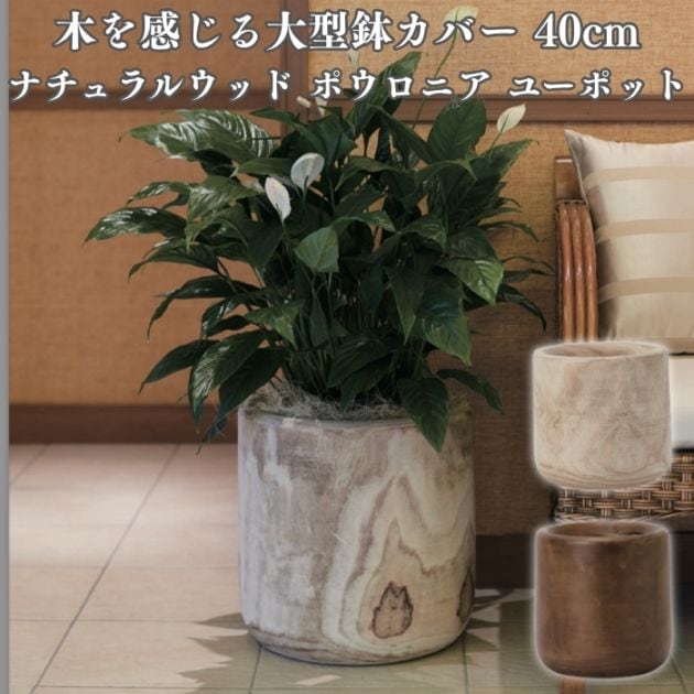 鉢カバー おしゃれ 木製 大型 丸型 13号 ナチュラルウッド ポウロニア ユーポット Lサイズ 高級 北欧 室内 屋内 観葉植物用 サボテン 特大 玄関 インテリア プランター 深型
