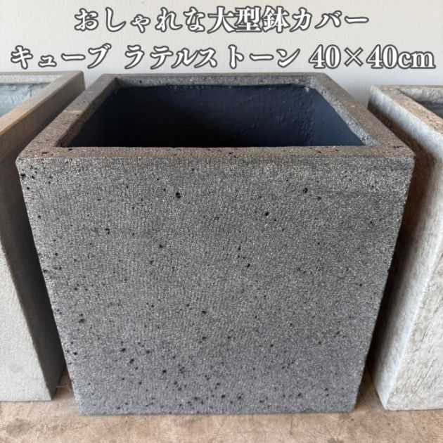 鉢カバー おしゃれ 大型 四角 40cm キューブ ラテルストーン Mサイズ スクエア 高級 北欧 室内 屋内 観葉植物用 サボテン 特大 玄関 インテリア プランター 深型