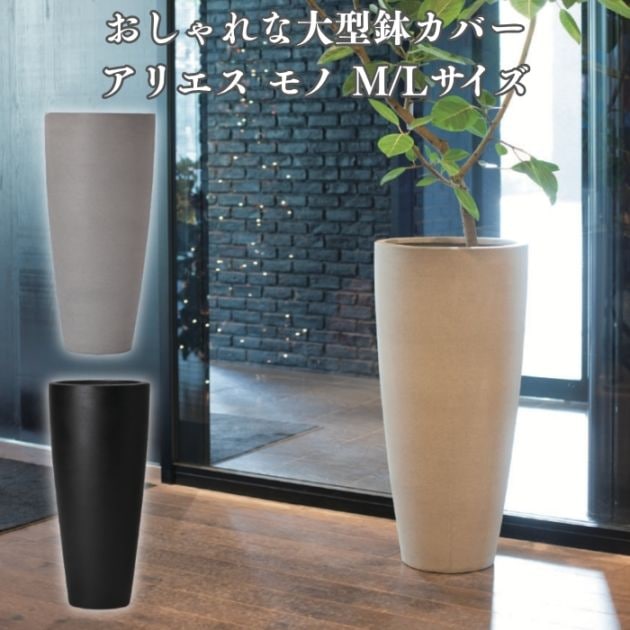 鉢カバー おしゃれ 大型 15号 12号 丸型 アリエス モノ L M サイズ 高級 北欧 室内 屋内 観葉植物用 サボテン 特大 玄関 インテリア プランター 深型