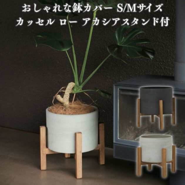 鉢カバー おしゃれ 大型 15号 11号 丸型 カッセル ロー アカシアスタンド付 M S サイズ 高級 北欧 室内 屋内 観葉植物用 サボテン 特大 玄関 インテリア プランター 深型