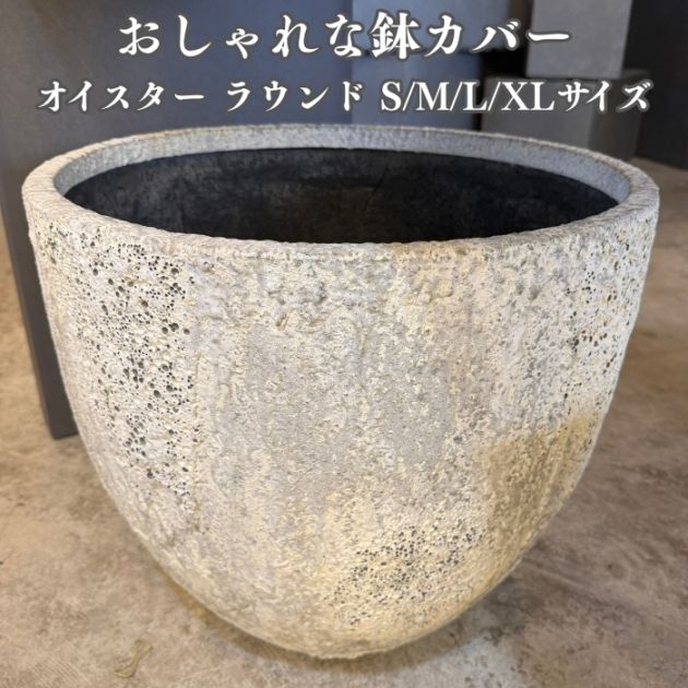 鉢カバー おしゃれ 大型 20号 16号 14号 11号 丸型 オイスター ラウンド S M L XL サイズ 高級 北欧 室内 屋内 観葉植物用 サボテン 特大 玄関 インテリア プランター 深型