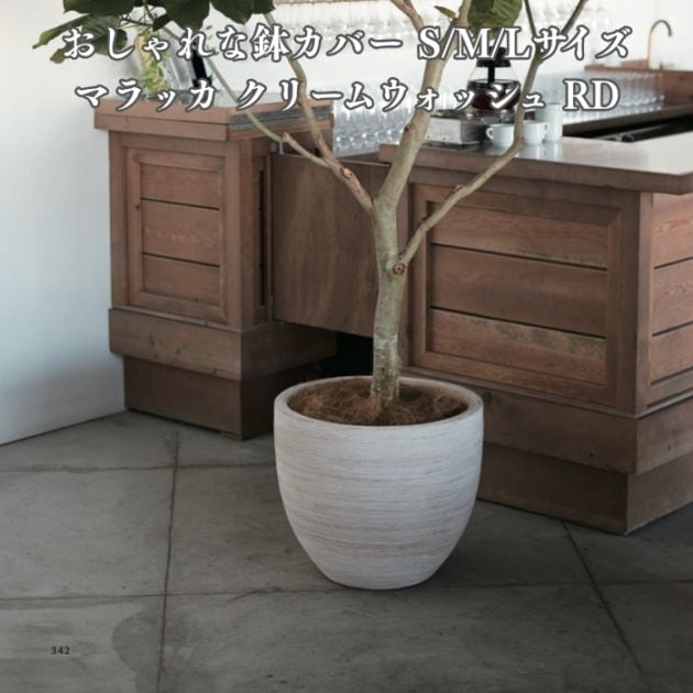 鉢カバー おしゃれ 大型 20号 17号 14号 丸型 マラッカ クリームウォッシュ RD S M L サイズ 高級 北欧 室内 屋内 観葉植物用 サボテン 特大 玄関 インテリア プランター 深型