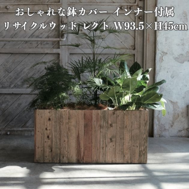 鉢カバー おしゃれ 軽い 大型 四角 スクエア リサイクルウッド レクト 樹脂インナー付 Lサイズ 高級 北欧 室内 屋内 観葉植物用 サボテン 特大 玄関 インテリア プランター 深型