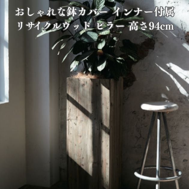 鉢カバー おしゃれ 軽い 大型 四角 スクエア リサイクルウッド ピラー 樹脂インナー付 Lサイズ 高級 北欧 室内 屋内 観葉植物用 サボテン 特大 玄関 インテリア プランター 深型