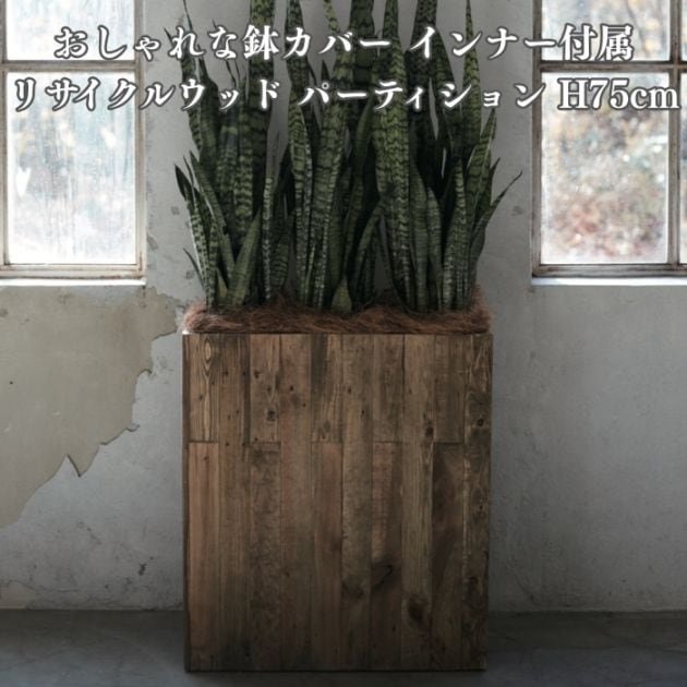 鉢カバー おしゃれ 軽い 大型 四角 スクエア リサイクルウッド パーティション 樹脂インナー付 Lサイズ 高級 北欧 室内 屋内 観葉植物用 サボテン 特大 玄関 インテリア プランター 深型