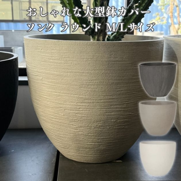 鉢カバー おしゃれ 軽い 大型 16号 14号 ソンク ラウンド L M サイズ 軽量 高級 北欧 室内 屋内 観葉植物用 サボテン 特大 玄関 インテリア プランター 深型
