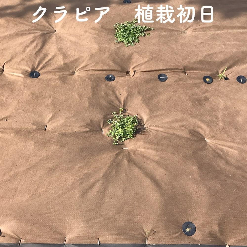 植栽初年度は、なるべくクラピアを踏まないように養生をお願いします。