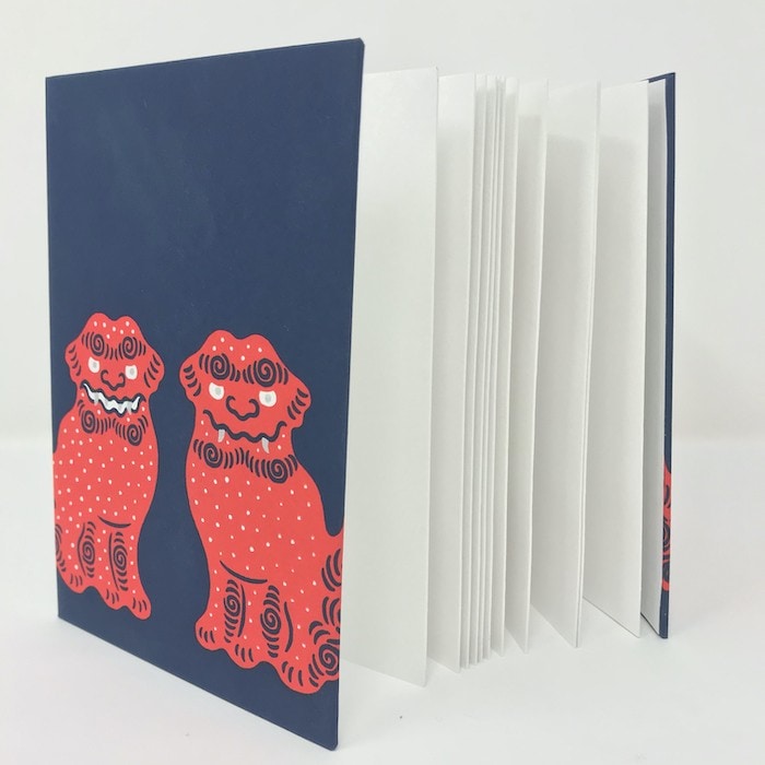 御朱印帳 「狛犬」 蛇腹折り 44ページ 和紙 シルクスクリーン かわいい おしゃれ 蛇腹折り ご縁 旅雑貨