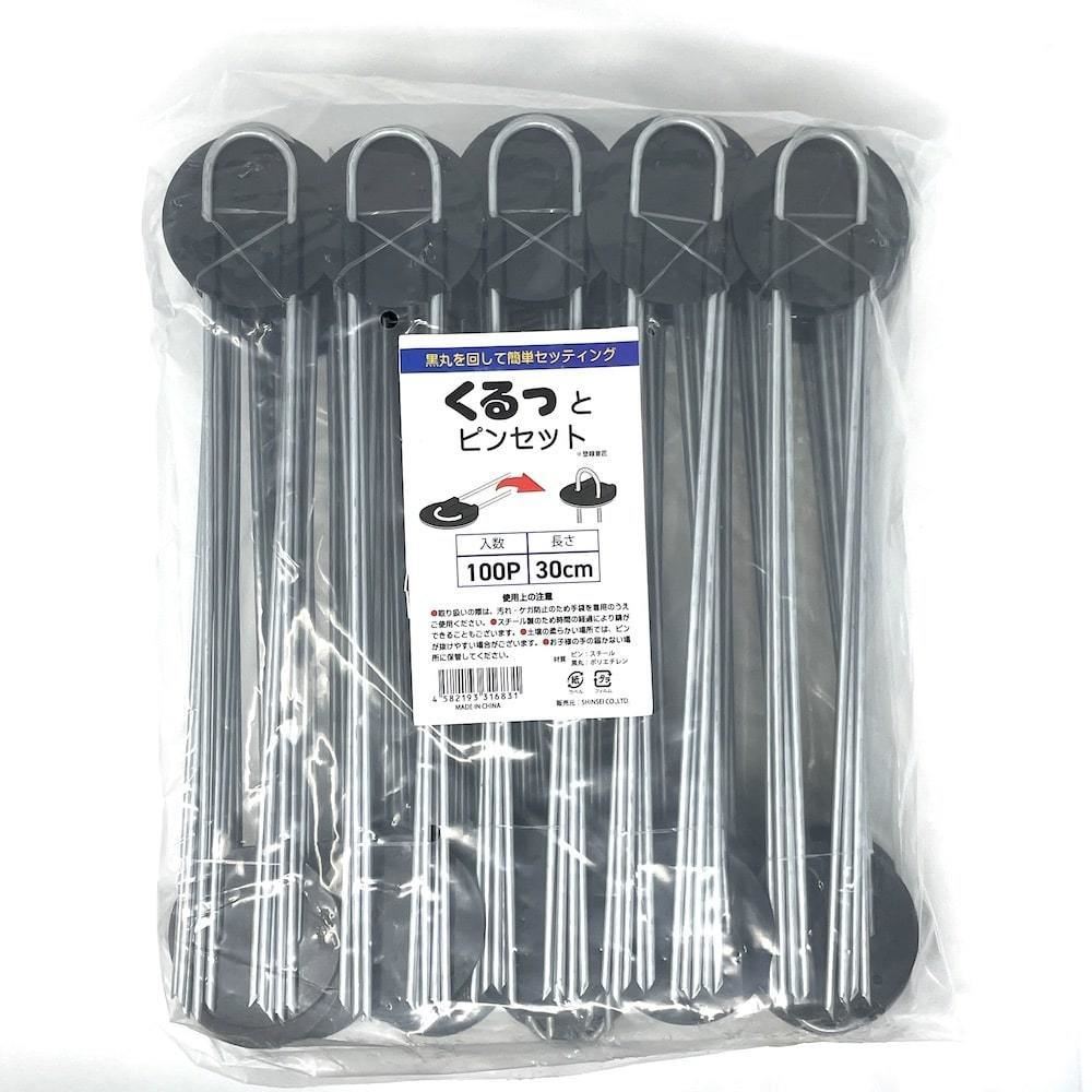 防草シート用 くるっとピン Uピン杭 ワッシャー付き 長さ30cm 1000本 100P×10個セット アンカー 黒丸 U字型