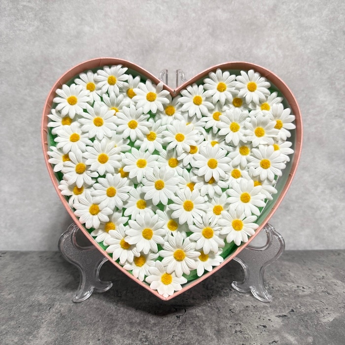 可憐な白いマーガレットをぎゅっと詰め込んだ、上品なハート型のバスフレグランス。