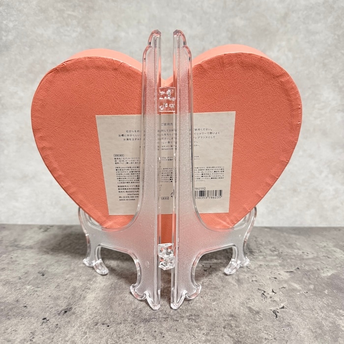 バスフレグランス商品は花のカタチの入浴剤です。花びら一枚一枚がバスペタルとなっており、お風呂に溶かすとほのかな石けんの香りと泡によってやすらぎを誘います。また、スタンド付きなのでそのまま飾りインテリアとしてもお楽しみいただけます。
