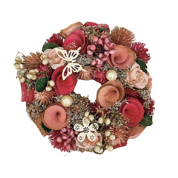 お花のリース ナチュラル Mサイズ 約25cm 玄関 お花 紙スタンド付き プレゼント クリスマス ギフト おしゃれ 造花 高級 豪華 かわいい飾り