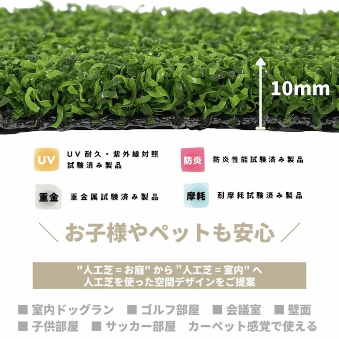 人工芝特有のチクチクが軽減されておりお子様にも安心、誤食しにくく走りやすいのでドッグランにも最適。