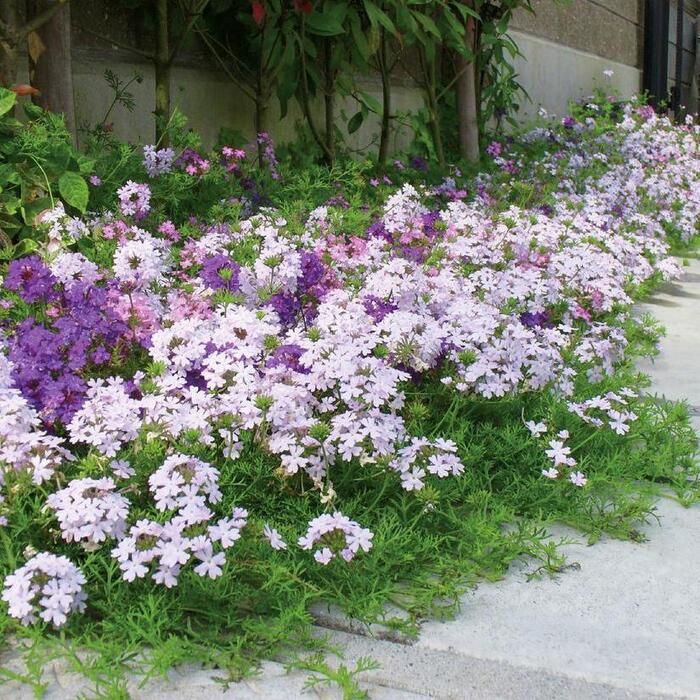 タピアン 3色入り 合計48株 肥料付き 9cmポット苗 3号 パープリッシュホワイト24株 バイオレット12株 ローズ12株 バーベナ属 サントリーフラワーズ グランドカバー 雑草対策