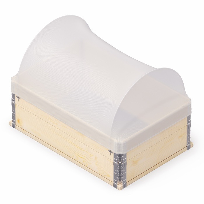 植物を直射日光や防風、雨などから守る不織布カバーとR支柱のセット。
