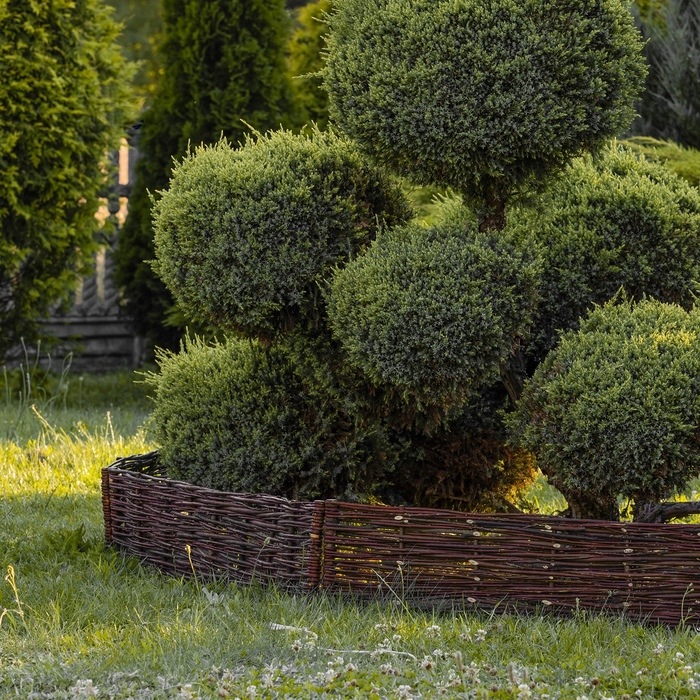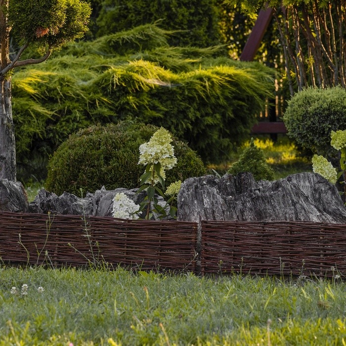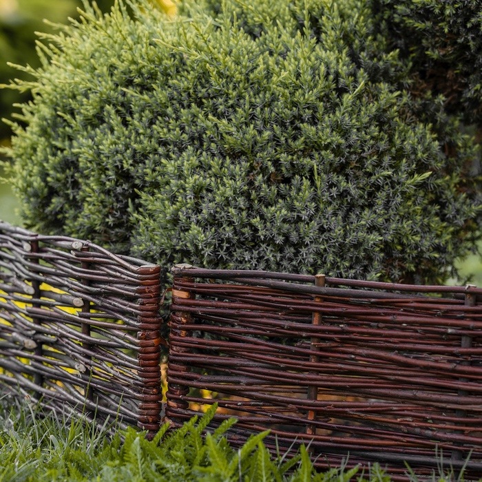イングリッシュガーデンでポピュラーな柳の木材を使用したローフェンスです。