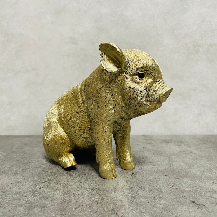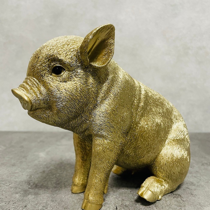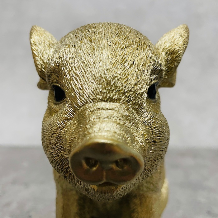 金色の豚の置物は、貯金箱のように「お金を守り、増やしてくれる存在」として、風水でも人気のアイテムです。