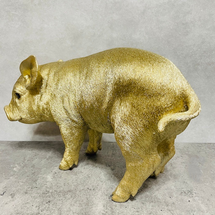 金色の豚の置物は、貯金箱のように「お金を守り、増やしてくれる存在」として、風水でも人気のアイテムです。