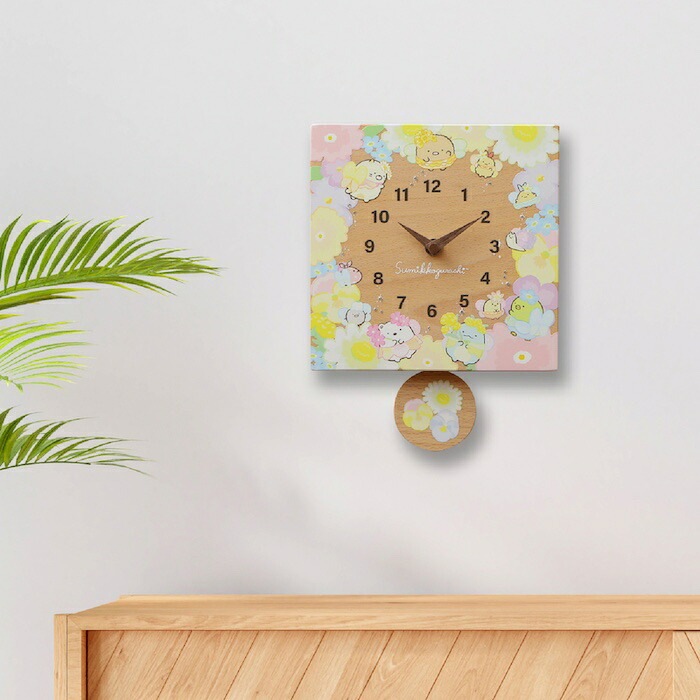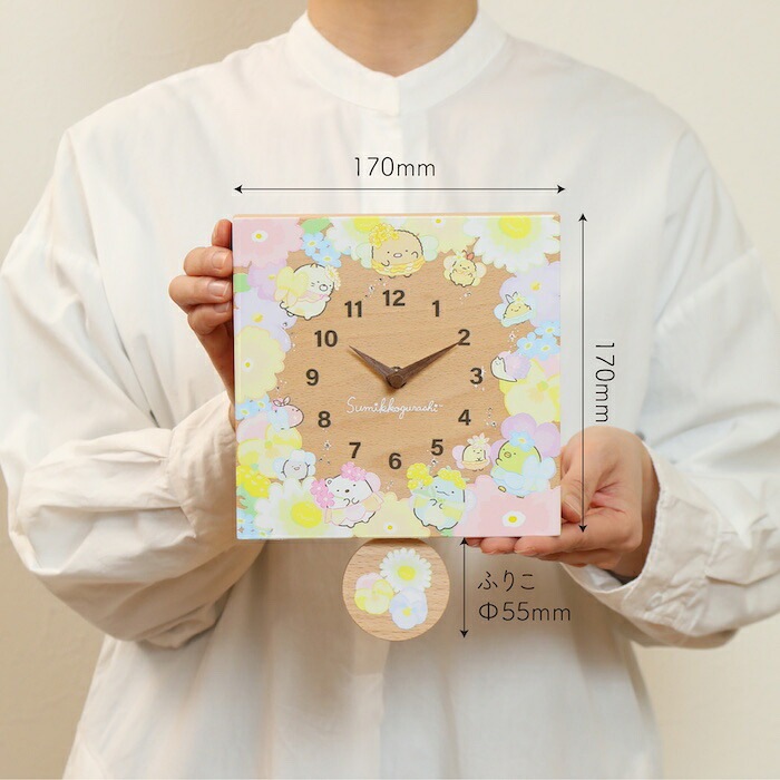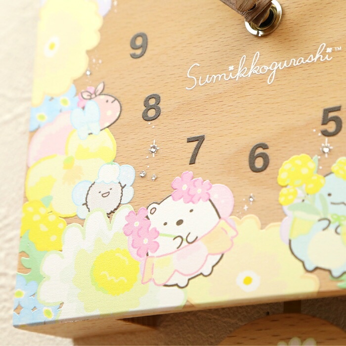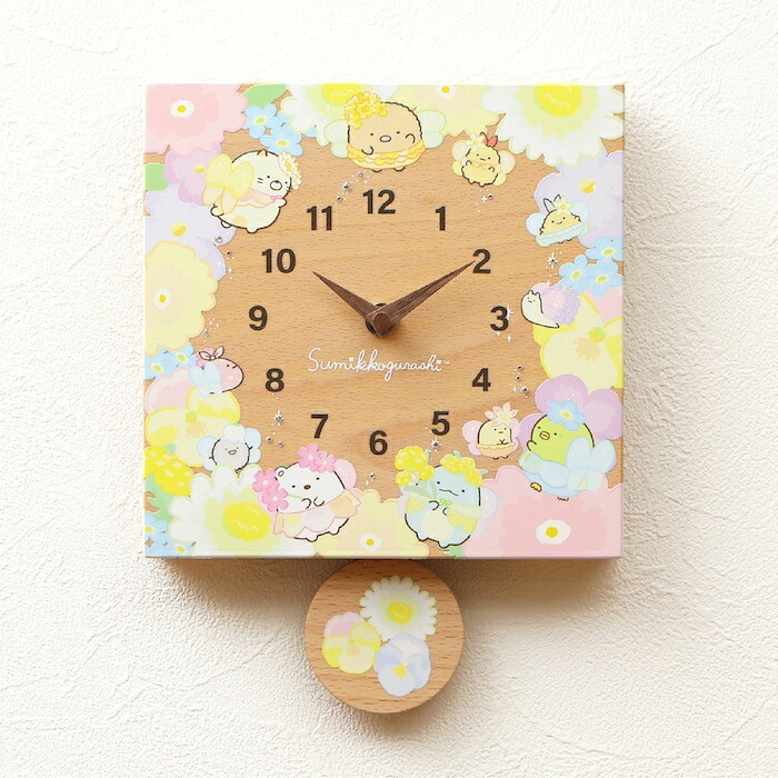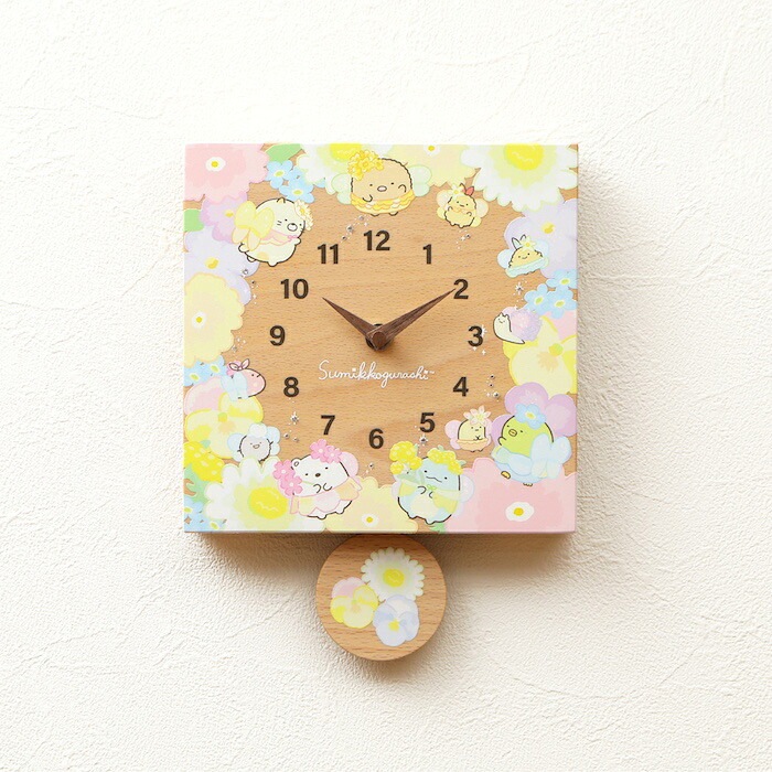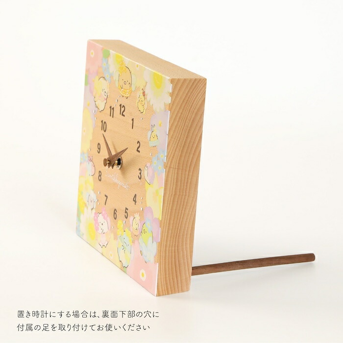 壁掛け時計 木製 すみっコぐらし お花のようせい キャラクター おしゃれ かわいい 置き時計 木 アナログ インテリア リビング 日本製 プレゼント ギフト 寝室 子供部屋 天然木 無垢材 非電波