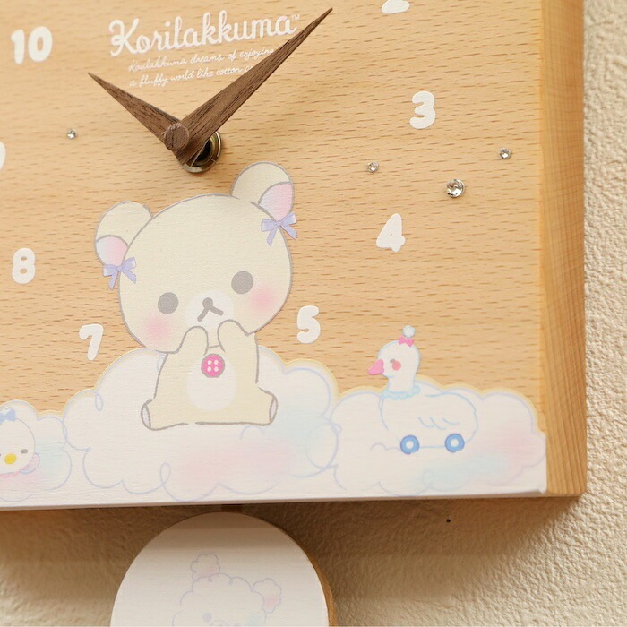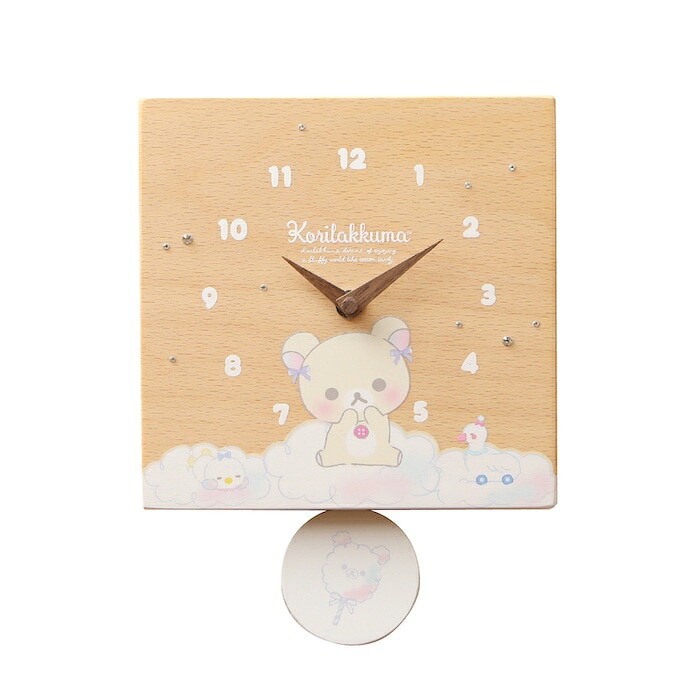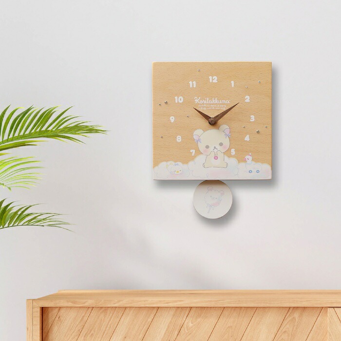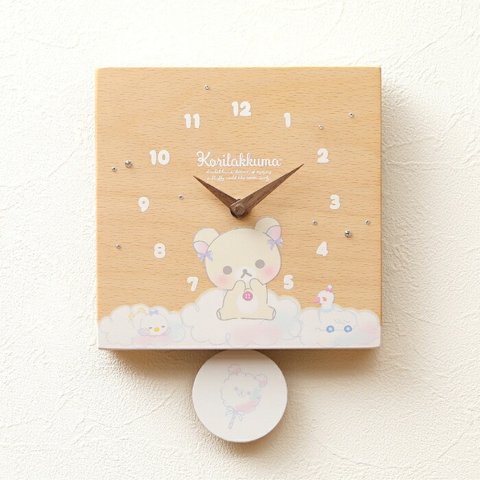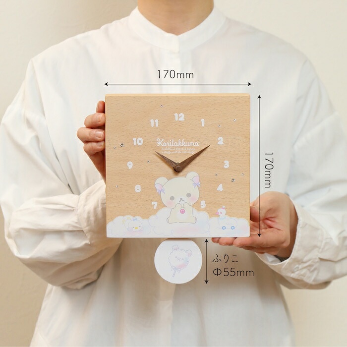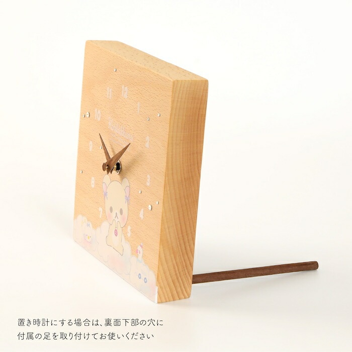壁掛け時計 木製 リラックマ わたあめ キャラクター 置き時計 おしゃれ かわいい 木 アナログ インテリア リビング 日本製 プレゼント ギフト 寝室 子供部屋 天然木 無垢材 非電波