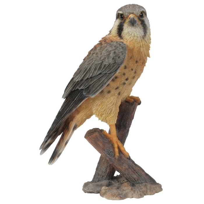 切り株にとまる隼の置物
