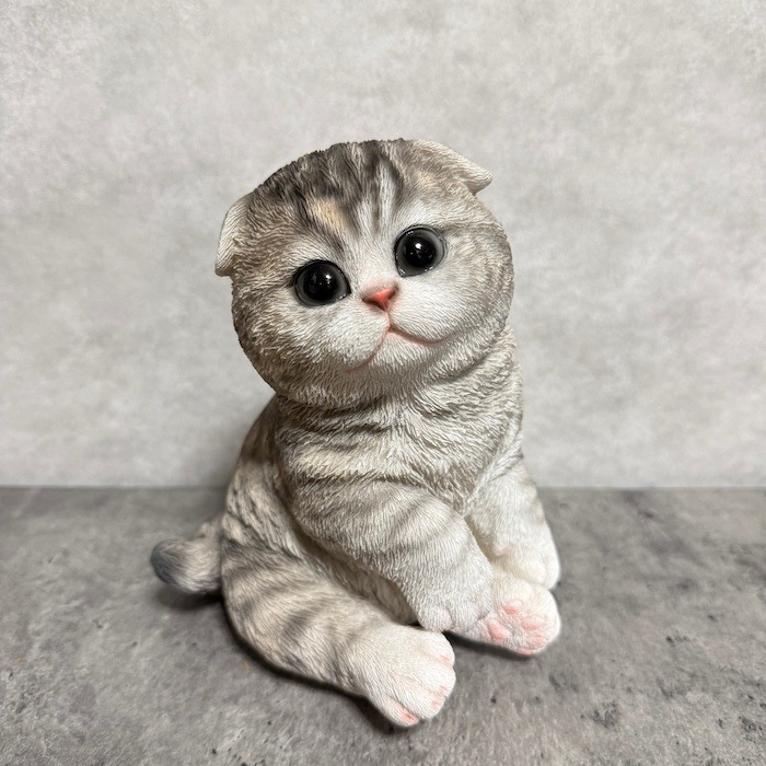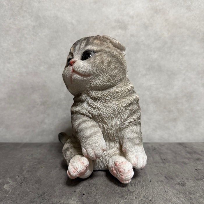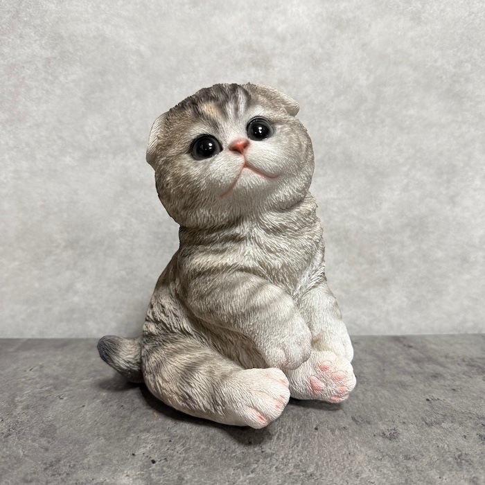 かわいい 猫 置物 スコ座りスコティッシュフォールドたれ耳 グレー系 woobia ウービア ネコ おしゃれ ガーデン インテリア オブジェ 可愛い プレゼント 北欧 玄関 雑貨 動物 モダン 面白い 庭 ギフト 屋外 家 リアル 玄関先 卓上 ガーデンオーナメント ガーデニング
