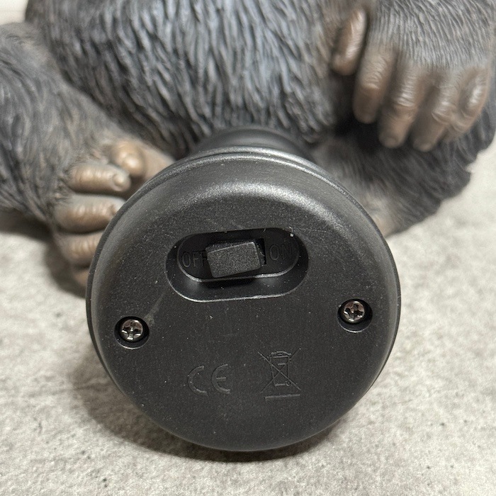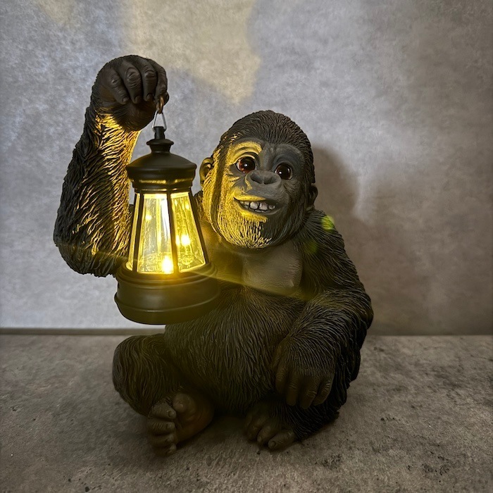 ソーラーランプを 右手で持ち上げる ゴリラのオブジェ(置物)