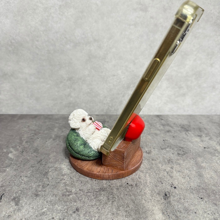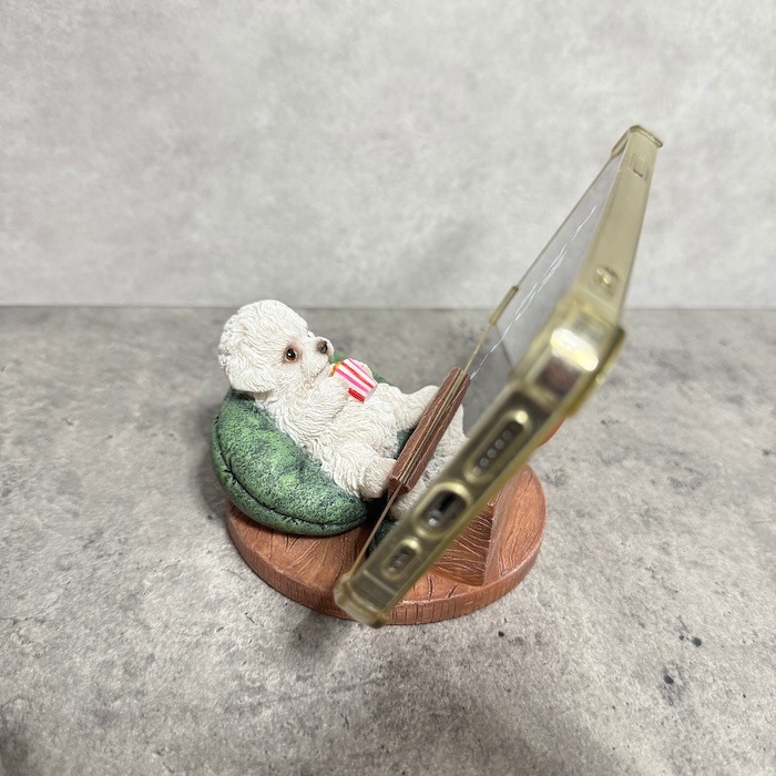 リアルな犬のスマホスタンドオブジェ
