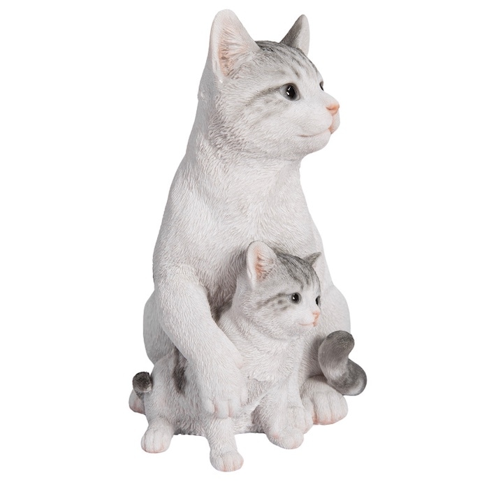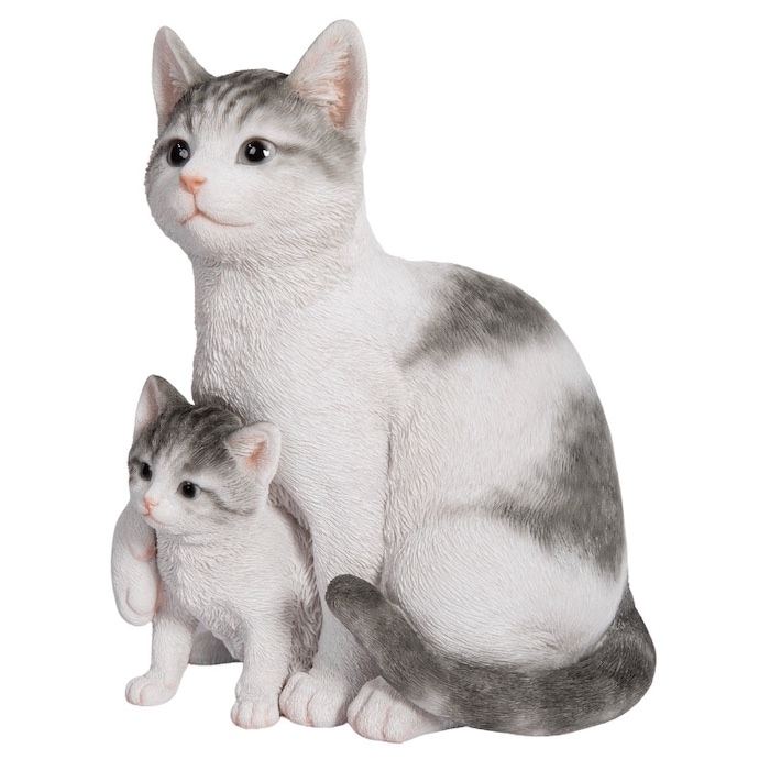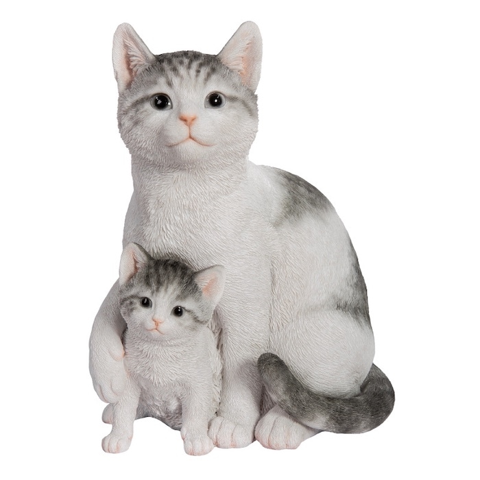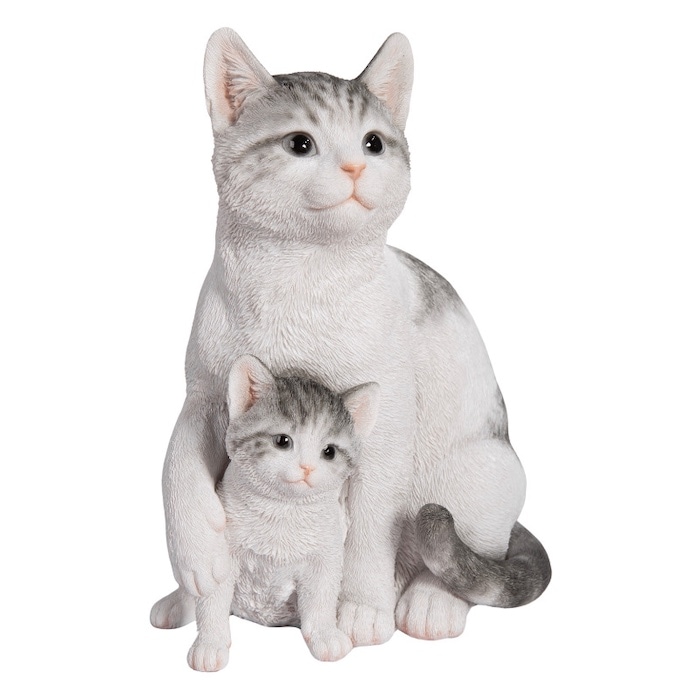 サバトラ白猫の親子の置き物