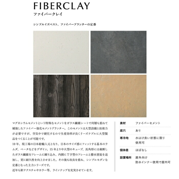 マグネシウムセメントという特殊なセメントをガラス繊維シートで何層も重ねて補強したファイバー強化セメントプランター。