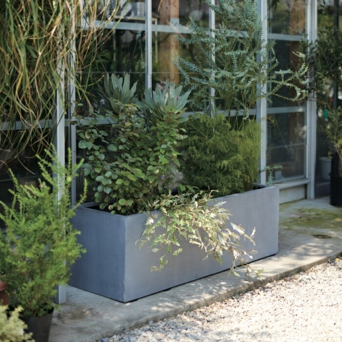 マグナスアーク 150 XLは、建築的な直線美と圧倒的スケールを兼ね備えたファイバーポリストーン製プランター。