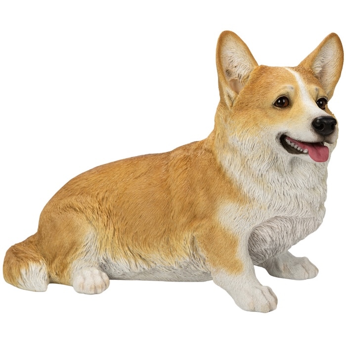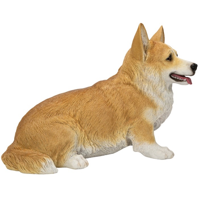 庭やガーデンに座るコーギーのオブジェは、自然の中に溶け込むリアルな存在感。