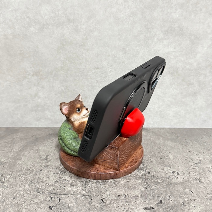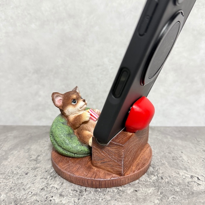 リアルな犬のスマホスタンドオブジェ