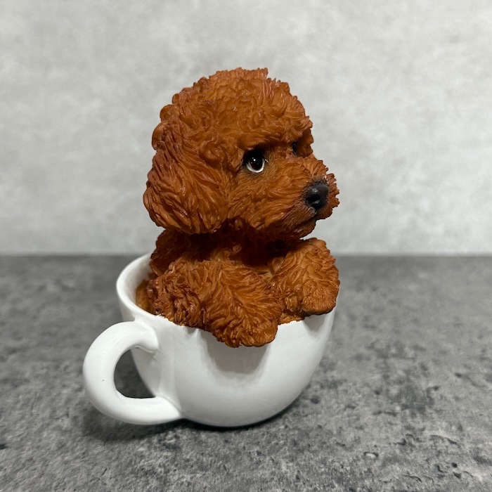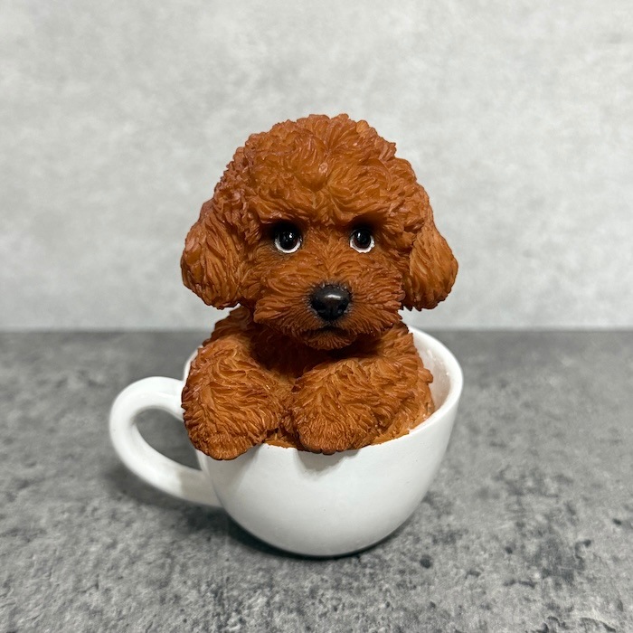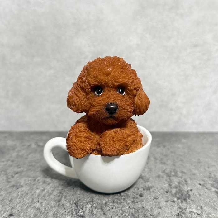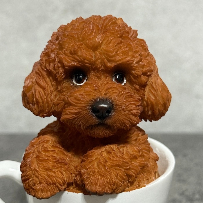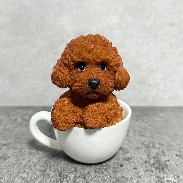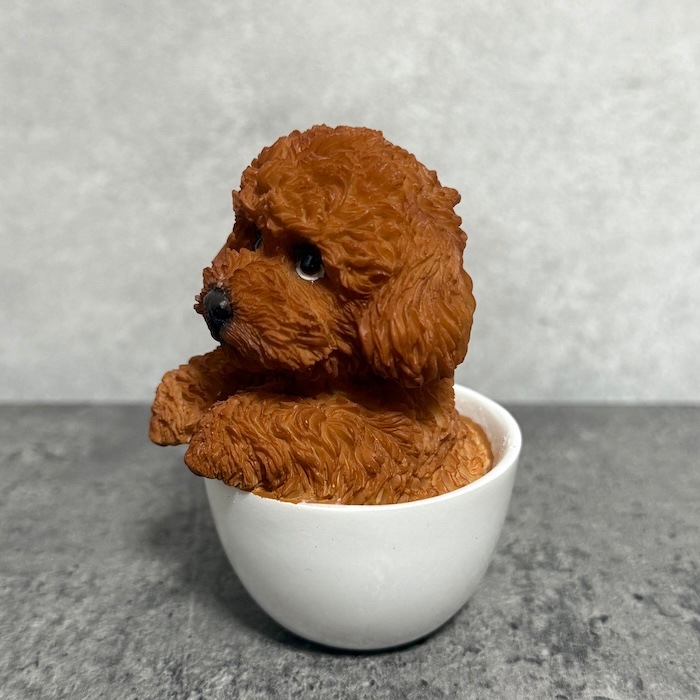 オフィス内でも飾れるコンパクトな犬の置物は、職場のインテリアに癒しをプラス。