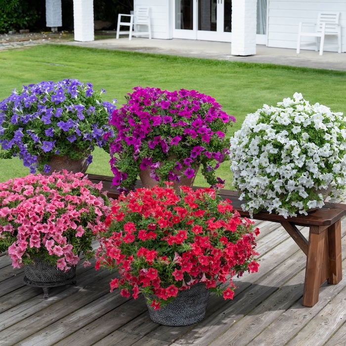 この「サフィニアプレミアムシリーズ 5品種セット」は、色と花数、草姿の美しさで、春から秋まで景色を華やかに整える花苗です。