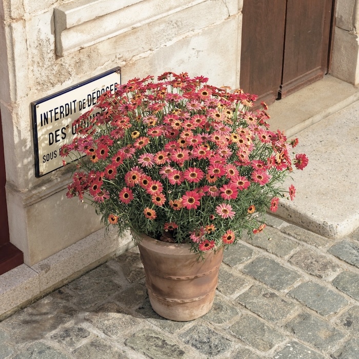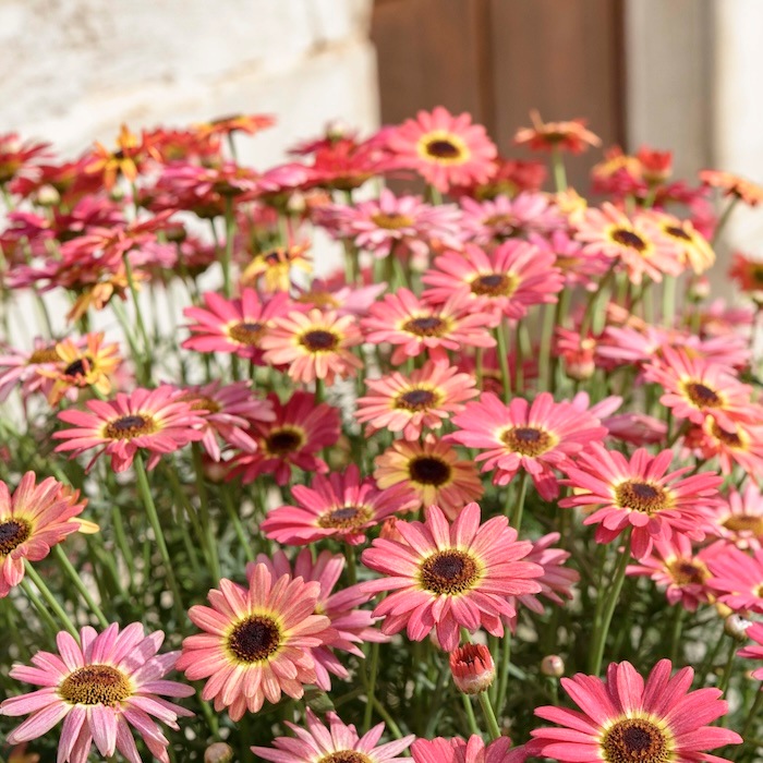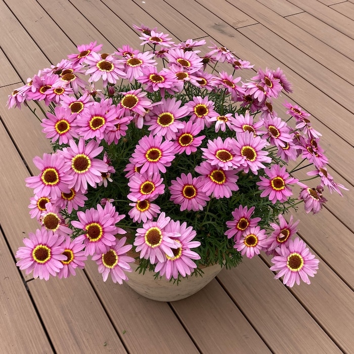 ぱっと目を引く明るいピンクで、鉢植えでも花壇でも華やかさを発揮します。