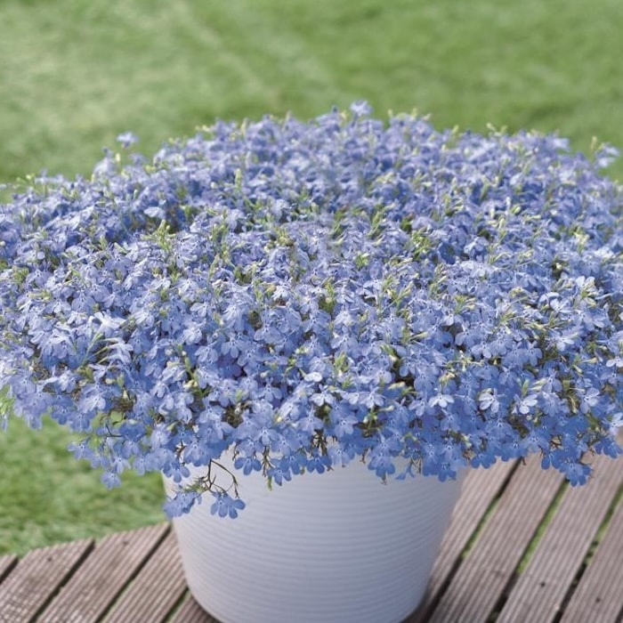 涼しげなスカイブルー。花付きが良く、形の良い草姿。