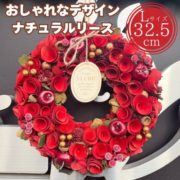 お花のリース ナチュラル Lサイズ 約33cm 玄関 お花 紙スタンド付き プレゼント クリスマス ギフト おしゃれ 造花 高級 豪華 かわいい飾り